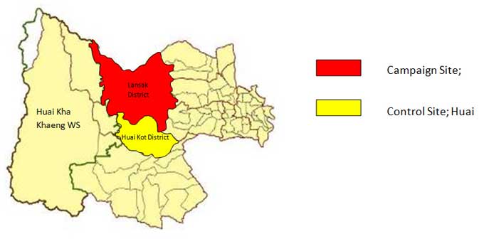 Campaign primarily focusing only Lansak district area which is the north part of HKK area. It's cover 6 sub districts which are Lansak , Pa-o, Rabam, Thung na ngam, Nam rob, Praduyuen and 1 Lansak Municipality. In Lansak district, there are 81 villages, comprising about 9,022 households with around 57,834 people.