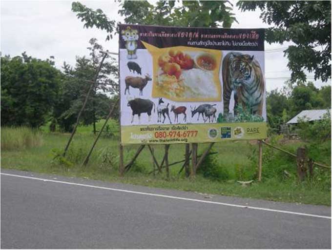 To increase the density of 5 species of ungulates (and with it the Indochinese tiger population) in Huai Kha Khaeng Wildlife Sanctuary, the campaign will aim to reduce poaching of ungulates and demand and supply of ungulate meat by the local community whilst increasing reporting and enforcement of wildlife poaching and trading. Key target groups (Wild meat consumers, restaurant and food shop owners and market stall owners) will be informed of the biodiversity value of the ungulate, wildlife conservation law, and risk to health from wild meat. The campaign will aim to establish pride amongst the community of being wild meat free and creating the social norm that consumption and selling of wild meat is illegal and no longer acceptable. The campaign initiated by Wildlife Conservation Society (WCS) Thailand Program will be supported by the Public Health Unit (PHU), Department of National Parks, Wildlife, and Plant Conservation (DNP) and through a pilot wild meat certification scheme for restaurants in the Lansak Municipality and a series of workshops for restaurant owners in the entire campaign site (Lansak District). Further enforcement will be increased through the creation of a steering committee (chaired by the Mayor of Lansak Municipality and comprising the PHU, the Police, the DNP, WCS and a representative from the district Government), a reporting hotline and the creation and training of an undercover team (run by WCS Wildlife Crime Monitoring in conjunction with DNP) carrying out regular checks in restaurants across the Lansak District. The campaign will be successful if the consumers change their behavior to stop consumption of wild meat and the restaurant, food shop and market owners stop selling wild meat in their shop. Further we expect reporting and enforcement of wildlife crime to initially go up and then down and overall evidence of hunting pressure in HKK to go down.