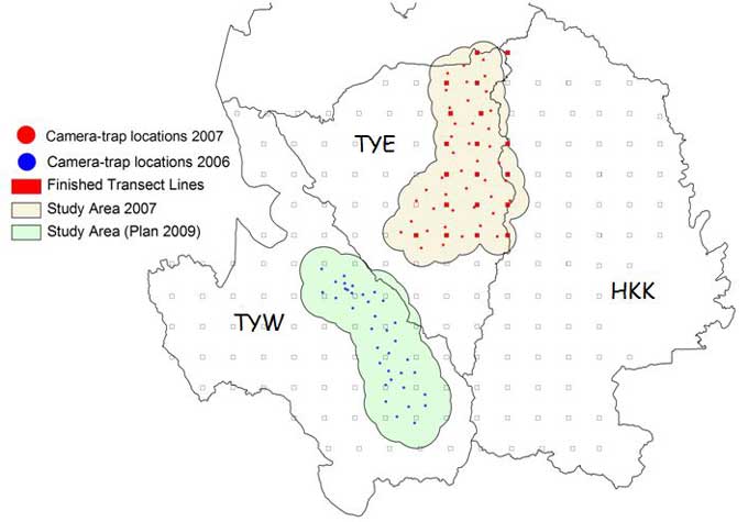 2. To expand research area at site nearby according to the success of tiger population monitoring in Huai Kha Khaeng Wildlife Sanctuary