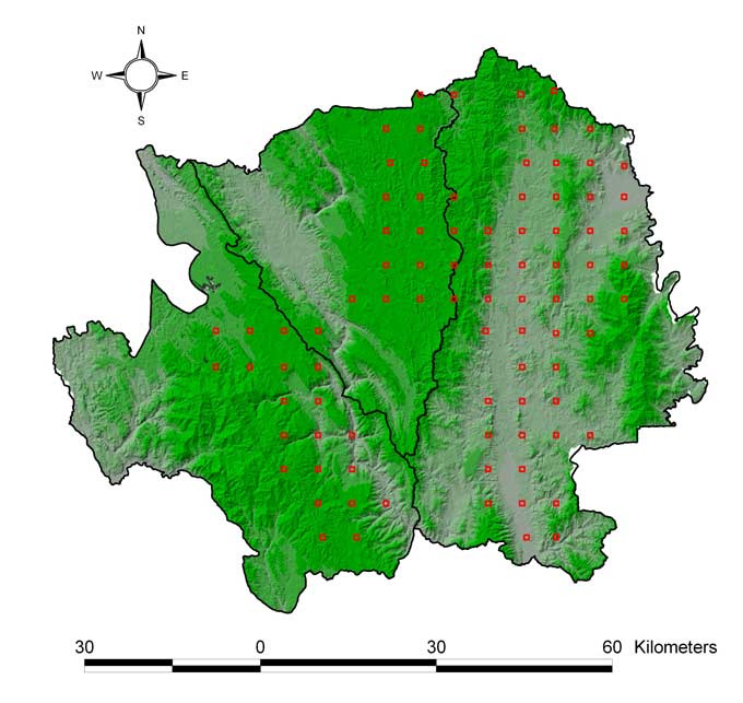 Square transect position which have been done in Huai Kha Khaeng - Thungyai Naresuan East and West Wildlife Sanctuaries