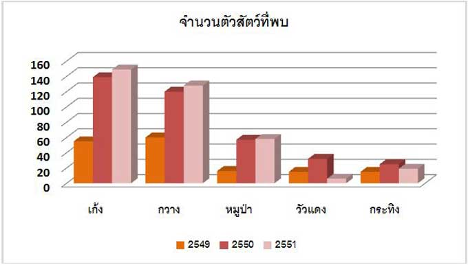Tiger’s prey population monitoring has to work along with tiger population monitoring in camera trapping method in order to determine both tiger and its prey populations together, including determining their dynamic. Consequently, results will be used for further management. As mentioned above, there is still lack of prey long term data for comparing with tiger population dynamic. Therefore, further monitoring on tiger and its prey population is required. Furthermore, we will find for funding from other sources to support the implementation of the prey population monitoring where there has been set up camera traps. As research requires quite a lot of work, so it is slightly difficult to find research funding. However, in the future there will be a funding source to support, hopefully, to have the opportunity to study on prey populations coupled with tigers in Huai Kha Khaeng - Thungyai Naresuan East and West Wildlife Sanctuaries.