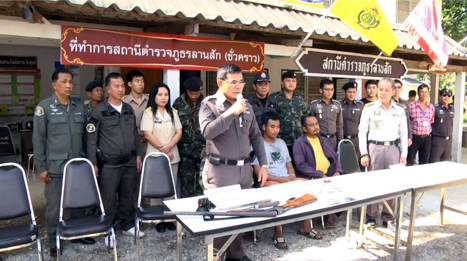 News conference given by Pol. Maj. Somchit Thongthang, Commander of Uthai Thani Provincial Police and Mr. Thanya Nethithammakul, Deputy Director General of National Parks, Wildlife and Plant Conservation Department after 3 more tiger poachers got arrested on November 19, 2015. (Photo: Thairath Online)