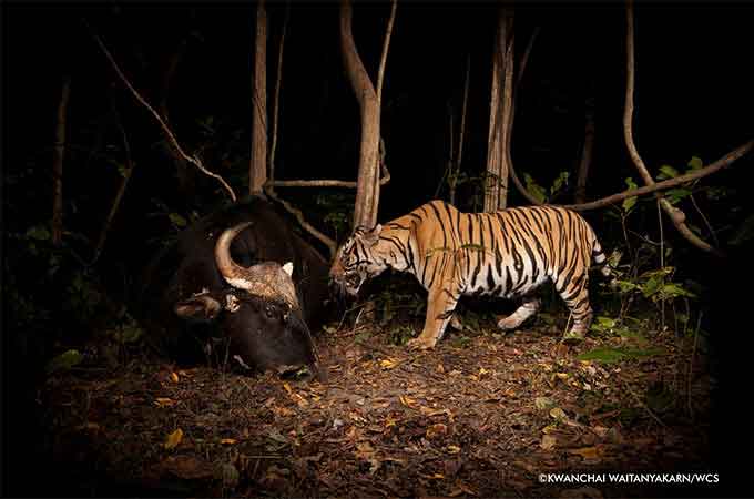 A research on tiger’s prey species in Huai Kha Khaeng Wildlife Sanctuary reveals that the main preys are ungulates such as; bantengs, sambar, muntjac, gaur and wild pig. And most of them are adults (Simcharoen, 2000). Whereas, some of them are also the prey species of leopard, the leopard prefer juvenile or subadult (Simcharoen, 2003).