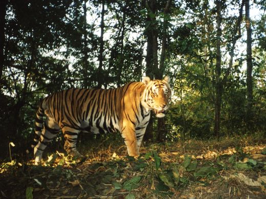 ภาพเสือโคร่งซึ่งถ่ายได้จากกล้องดักถ่ายภาพ (Camera trap) ในเขตรักษาพันธุ์สัตว์ป่าห้วยขาแข้ง