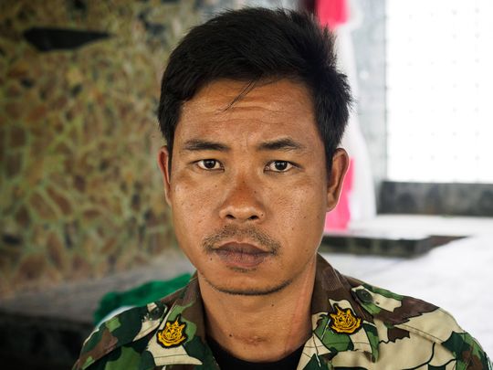 นาย ยอด วงศ์ดวงดำ เจ้าหน้าที่เขตรักษาพันธุ์สัตว์ป่าห้วยขาแข้ง ซึ่งถูกยิงบริเวณลำคอจากการปะทะกับพรานล่าเสือโคร่ง เมื่อปี พ.ศ. 2556 (ภาพ: Thomas Maresca)